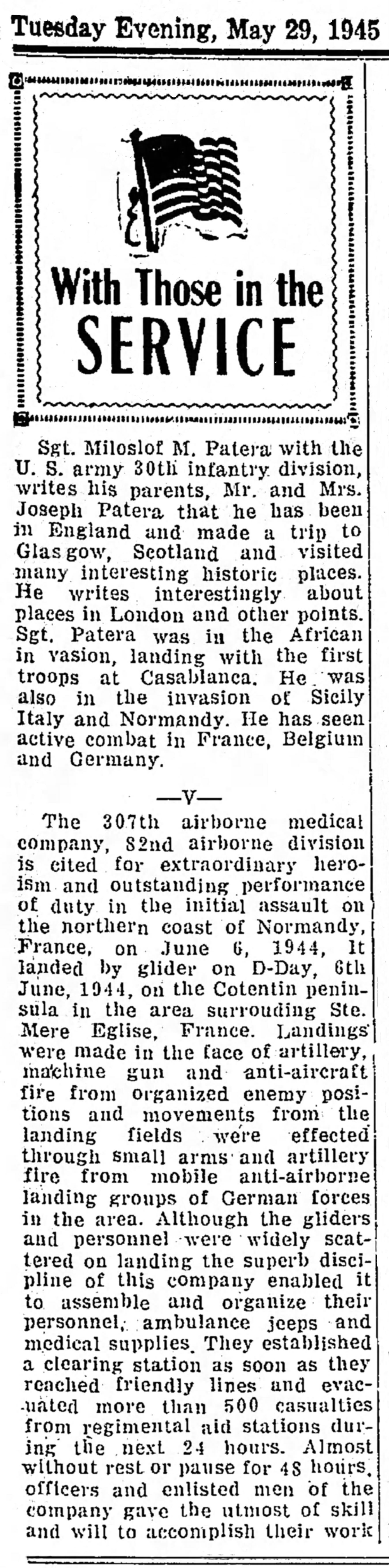 In view of its record in World War I, the unit was reorganized as the 307th Medical Regiment. It was redesignated as the 307th Medical Battalion, and finally became the 307th Airborne Medical Company, a part of the new 82nd Airborne Division. The 307th is entitled to silver bands for it's guidon engraved: St. Mihiel, Meuse - Argonne, and Lorraine.
