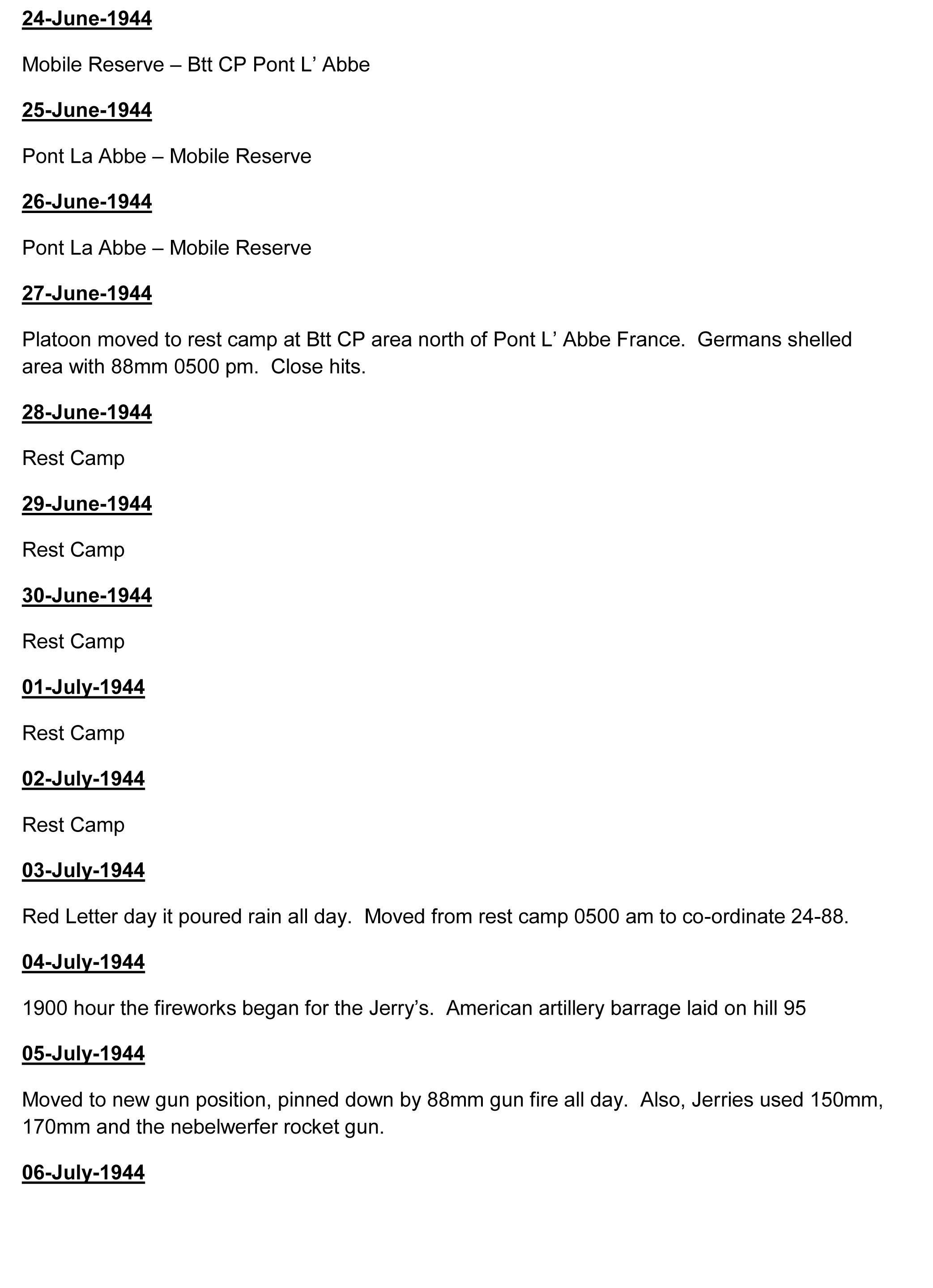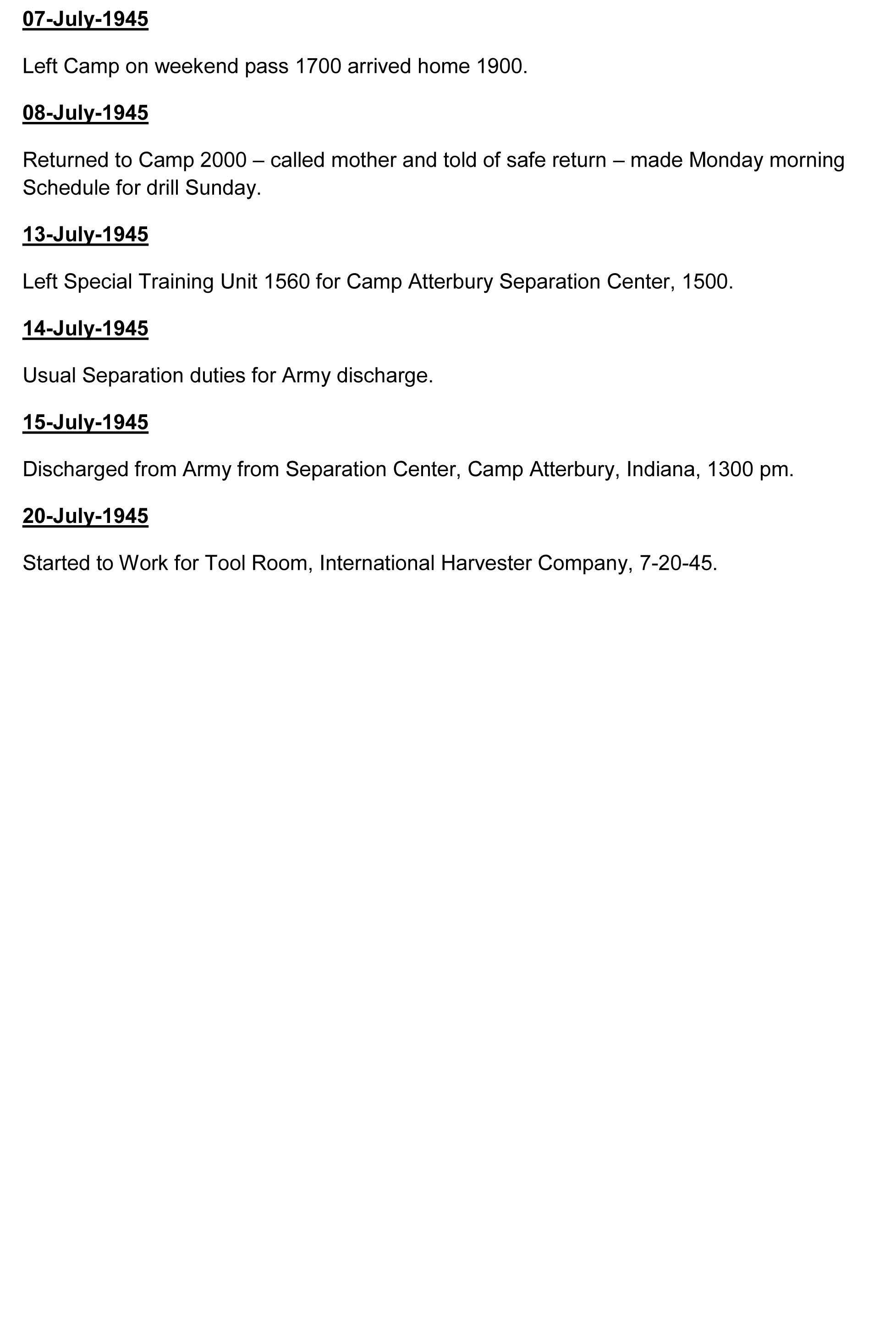 Harry kept a diary from 1942 though 1945. You can read a transcribed               copy below. Our thanks to Gregg High and Harry's daughter,                                           Denise Berry High.